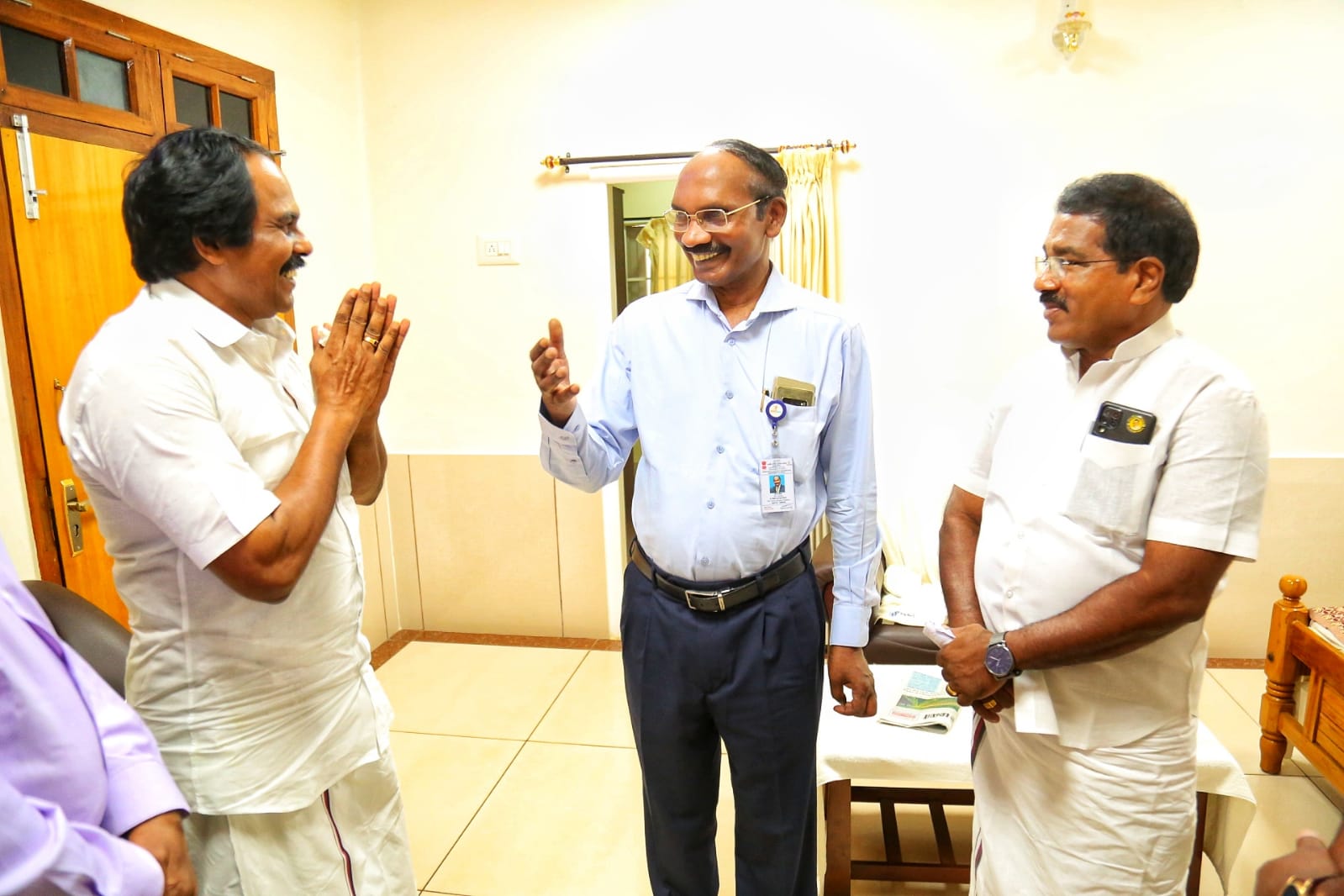 நாகர்கோவிலில் முன்னாள் இஸ்ரோ தலைவர் மரியாதைக்குரிய சிவன் அவர்களை தகவல் தொழில்நுட்பத் துறை அமைச்சர் மனோ தங்கராஜ் அவர்கள் மற்றும் நாகர்கோவில் மாநகராட்சி மேயர் ரெ.மகேஷ் ஆகியோர் மரியாதை நிமித்தமாக சந்தித்தனர்