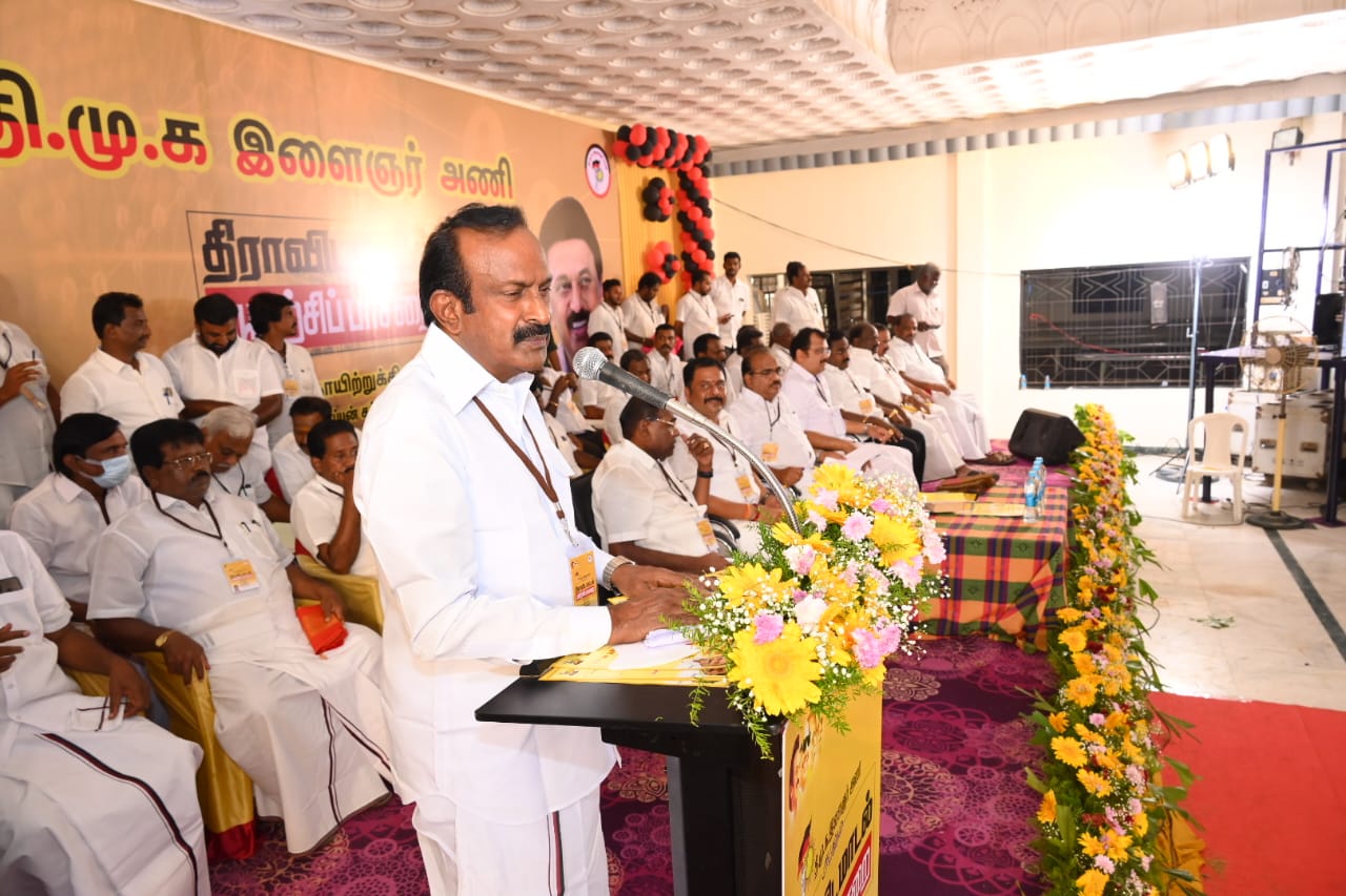 ஈரோடு மாவட்டம் மொடக்குறிச்சியில் திமுக இளைஞரணி திராவிட மாடல் பயிற்சிப்பாசறை நிகழ்ச்சியில் தமிழக வீட்டு வசதி மற்றும் நகர்ப்புற மேம்பாட்டுத்துறை அமைச்சர் சு முத்துசாமி பங்கேற்று பேசினார்.