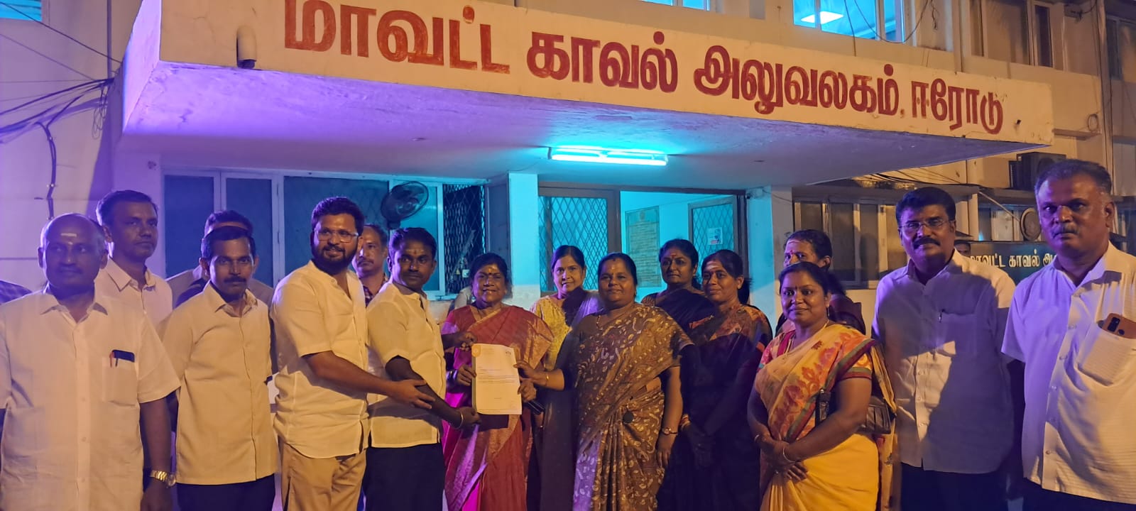 இந்த நிலையில் இன்று பாரதிய ஜனதா கட்சியின் வெளிநாடு மற்றும் வெளி மாநில தமிழ் வளர்ச்சி பிரிவு சார்பாக திமுக நட்சத்திர பேச்சாளர் சைதை சாதிக்கை உடனடியாக கைது செய்ய வலியுறுத்தி ஈரோடு மாவட்ட காவல் கண்காணிப்பாளர் அலுவலகத்தில் பிரிவின் தலைவர் சி பி சக்கரவர்த்தியின் தலைமையில் புகார் மனு அளிக்கப்பட்டுள்ளது…