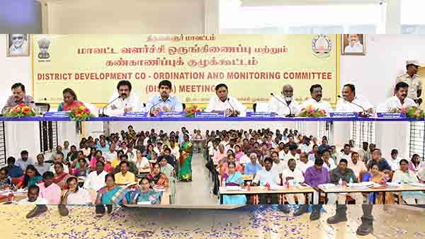 திருவள்ளூர் அக் 02 : திருவள்ளூர் மாவட்ட ஆட்சியர் அலுவலக பெருந்திட்ட வளாகத்தில் உள்ள, ஊரக வளர்ச்சி முகமை கூட்டரங்கில் மாவட்ட வளர்ச்சி ஒருங்கிணைப்பு மற்றும் கண்காணிப்பு குழு கூட்டம் (திஷா) நடைபெற்றது. திருவள்ளூர் நாடாளுமன்ற உறுப்பினரும் தலைவருமான (திஷா) எஸ்.சசிகாந்த் செந்தில் அவர்கள் தலைமை தாங்கினார். மாவட்ட ஆட்சியரும் உறுப்பினர் செயலருமான (திஷா) மு.பிரதாப், சட்டமன்ற உறுப்பினர்கள் வி.ஜி.இராஜேந்திரன் (திருவள்ளூர்) , எஸ்.சந்திரன் (திருத்தணி), ஆ.கிருஷ்ணசாமி (பூவிருந்தவல்லி), எஸ்.சுதர்சனம் (மாதவரம்), துரை சந்திரசேகர் (பொன்னேரி), ஆவடி மாநகராட்சி ஆணையர் ரா.சரண்யா ஆகியோர் முன்னிலை வகித்தனர்.