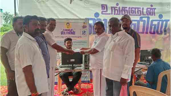 சேலத்தில் உங்களுடன் ஸ்டாலின் திட்ட முகாம் எம்.கே.நகர் செட்டிச்சசாவடி பகுதியில் நடைபெற்றது. இம்முகாமில் பெறப்பட்ட மனுக்களை அந்தந்த துறைக்கு அனுப்பி வைத்து தீர்வு காணப்பட்டது.