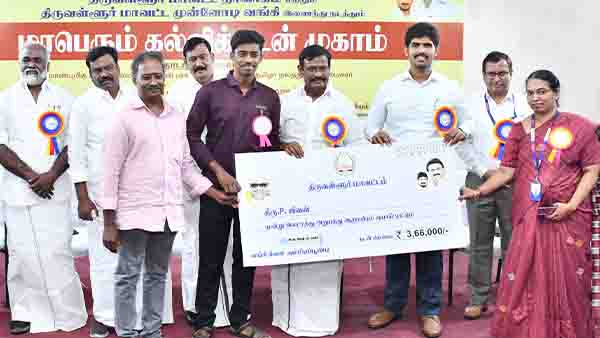115 மாணவ மாணவியருக்கு மொத்தம் ரூ.4.31 கோடி மதிப்பிலான கல்விக் கடன்களுக்கான ஆணைகளை நேரடியாக வழங்கப்பட்டது. திருவள்ளூர் மாவட்டத்தில் மொத்தம் 1089 கணக்குகளுக்கு ரூ.78 கோடி கல்விக் கடன் வழங்கப்பட்டுள்ளது. 2025-2026 கல்வியாண்டில், தமிழ்நாடு அரசு நிர்ணயித்த கல்விக் கடனுக்கான இலக்கு ரூ.90 கோடியில், நமது மாவட்டம் தற்போது வரை ரூ.193.00 கோடியை கல்வி கடன் எட்டியுள்ளது.உயர்கல்வி பயிலும் மாணவர்கள் தங்கள் கனவுகளை எட்டிப்புடிப்தற்காக பெற்ற கல்வி கடன் உதவிகளை தங்கள் நினைத்த பணிகளில் சேர்ந்த பின் அக்கல்வி கடன்களை திரும்ப செலுத்த வேண்டும் என கூறினார்.