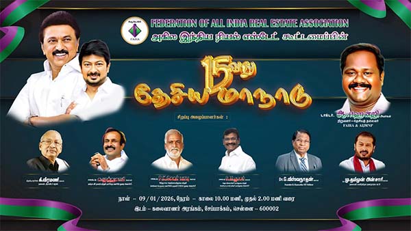 அதே போன்று கட்டுமானம் உள்ளிட்ட ரியல் எஸ்டேட் துறையின் வளர்ச்சிக்கும் – எழுச்சிக்கும் சம்பந்தப்பட்ட வீட்டுவசதி துறை, மாநகராட்சி, நகராட்சி, பேரூராட்சி உள்ளிட்ட நகர்ப்புற உள்ளாட்சி, ஊரக உள்ளாட்சி, பதிவுத்துறை, வருவாய்த்துறை, ரியல் எஸ்டேட் ஒழுங்குமுறை ஆணையம், பொதுப்பணித் துறை, தொழில்துறை உள்ளிட்ட துறைகளில் இன்னும் கொண்டு வர வேண்டிய சட்டதிட்டங்கள், சட்டதிருத்தங்கள், மாற்றியமைக்க வேண்டியவைகள், எளிமைப்படுத்த வேண்டியவைகள் என ஆக்கபூர்வமான கோரிக்கைகளை நிறைவேற்றி, மகத்தான தீர்மானங்களையும் மைய – மாநில அரசுகளுக்கு முன்வைத்து FAIRA கூட்டமைப்பின் நிறுவனர் மற்றும் தேசியத் தலைவர் டாக்டர்.ஆ.ஹென்றி அவர்கள் சிறப்புரையாற்றுகிறார். இந்நிகழ்ச்சியை தேசிய பொதுச் செயலாளர் திரு. V.ஜெயச்சந்திரன் ஒருங்கிணைக்க, தேசிய பொருளாளர் திரு. R.சந்திரசேகர் தலைமையில் நடைபெறுகிறது.