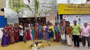 கோவை மாவட்டம் இராமநாதபுரம் பகுதியில், சில்க் வில்லேஜ் கைத்தறி ஆராய்ச்சி மையம் செயல்பட்டு வருகின்றது. அழிந்து வருகின்ற கைத்தறி நெசவாளர்களின் வாழ்வை மீட்கும் வகையில் இம்மையம் செயல்படுவதன், கைத்தறி நெசவு முறைகள் குறித்து பள்ளி, கல்லூரி மாணவ மாணவியர்களுக்கு பயிற்சிகளும் வழங்கி வருகின்றது. இந்த நிலையில் இம்மையத்தில், பொங்கல் விழா நிகழ்ச்சி நடைபெற்றது. பாரம்பரிய முறைப்படி நடைபெற்ற இதில், கல்லூரி மாணவ மாணவியர்கள் பொங்கல் வைத்து, தமிழர்களின் பாரம்பரிய குலவை சத்தமிட்டு, ஆடிப்பாடி கொண்டாடி, சூரிய பகவானுக்கு பொங்கல் வைத்து வழிபாடு நடத்தி மகிழ்ந்தனர். தொடர்ந்து நடைபெற்ற நிகழ்ச்சியில் மியூசிக்கல் சேர், கயிறு இழுத்தல், உரி அடித்தல், உள்ளிட்ட தமிழர்களின் பாரம்பரிய விளையாட்டுக்களை மாணவ மாணவியர்கள் விளையாடி மகிழ்ந்தனர். இந்நிகழ்ச்சியில் சில்க் வில்லேஜ் நிறுவனத்தின் நிறுவனர் கைத்தறி முருகேசன், பழனிவேல், ஆலோசகர் ராஜாராம் ஆசிரியர்கள், ஊழியர்கள் உள்ளிட்டோர் கலந்து கொண்டு மாணவ மாணவர்களின் பொங்கல் விழாவினை ரசித்தனர் என்பது குறிப்பிடத்தக்கது.