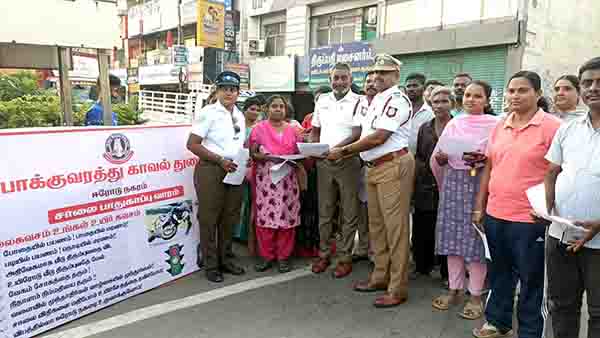 ஈரோடு மாவட்ட காவல் கண்காணிப்பாளர் அ.சுஜாதா அவர்களின் ஆணைக்கிணங்க போக்குவரத்து காவல்துறையினர் மேற்கொண்டு வரும் அதிரடி நடவடிக்கைகளின் ஒரு பகுதியாக, ஈரோடு வடக்கு போக்குவரத்து காவல் நிலையம் சார்பாக விழிப்புணர்வு நிகழ்ச்சி நடைபெற்றது. ஆய்வாளர் ராமகிருஷ்ணன் தலைமையில் ஈரோடு பேருந்து நிலையம் அருகிலுள்ள ஸ்வஸ்திக் கார்னர் சாலையில் நடைபெற்ற இந்த நிகழ்ச்சியில், நான்கு சக்கர மற்றும் இருசக்கர வாகன ஓட்டிகளுக்கு போக்குவரத்து விதிகள் குறித்த விழிப்புணர்வு ஏற்படுத்தப்பட்டது. இதில் உதவி ஆய்வாளர் சண்முகமூர்த்தி மற்றும் போலீசார் கலந்துகொண்டு வாகன ஓட்டிகளுக்கு விழிப்புணர்வு பதாகைகளை வழங்கினர். அப்போது, மது அருந்திவிட்டு வாகனம் ஓட்டக்கூடாது, கட்டாயம் ஹெல்மெட் அணிய வேண்டும், வாகனம் ஓட்டும்போது செல்போன் பேசுவதைத் தவிர்க்க வேண்டும், இருசக்கர வாகனத்தில் இருவருக்கு மேல் பயணம் செய்யக்கூடாது மற்றும் அதிவேகமாகச் செல்வதைத் தவிர்க்க வேண்டும் என வலியுறுத்தப்பட்டது.