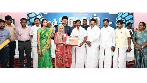 உலகம் உங்கள் கையில்” உயர்கல்வி பயிலும் மாணவர்களுக்கு மடிக்கணினி வழங்கும் திட்டத்தில் 9425 மாணவ, மாணவியர்களுக்கு மடிக்கணினிகள் : அமைச்சர் சா.மு.நாசர் வழங்கினார் :
